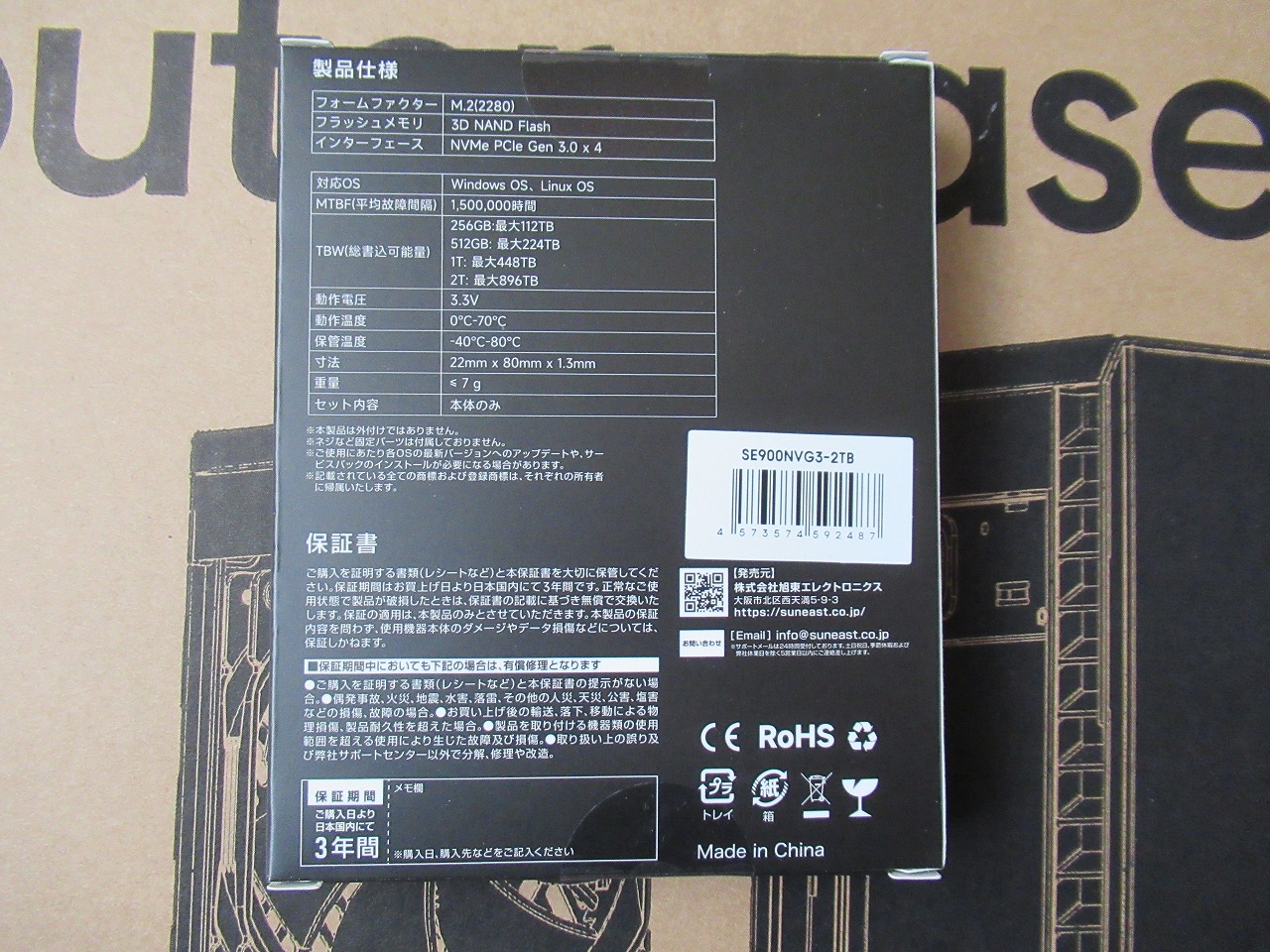 | SUNEAST | NVMe SSD PCIe Gen 3.0×4e 2TB 読取速度3400MB/s 3年保証 | ー |
