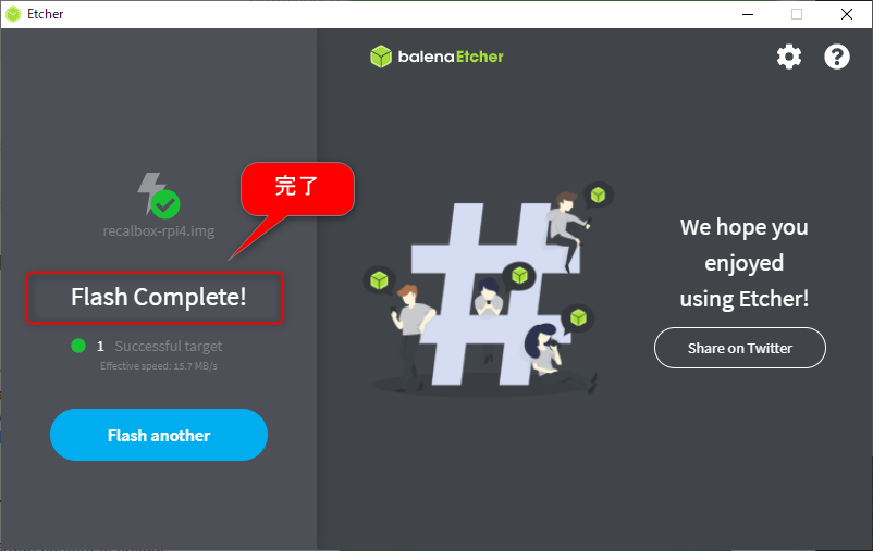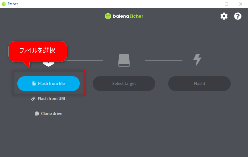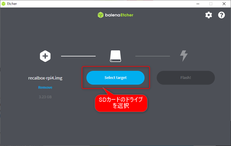 Flashボタンを押下するとイメージの書き込みが行われる |